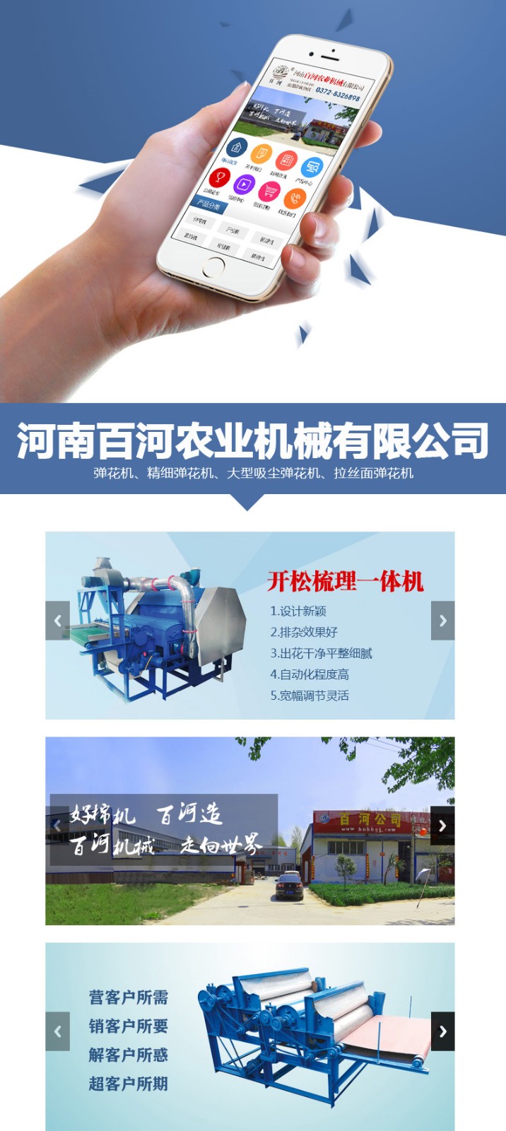河南百河農(nóng)業(yè)機(jī)械有限公司主要生產(chǎn)彈花機(jī)、精細(xì)彈花機(jī)、大型吸塵彈花機(jī)、拉絲面彈花機(jī)、寬幅彈花機(jī)、梳理機(jī)、開松梳理一體機(jī)、精細(xì)梳理機(jī)、梳棉機(jī)、電腦絎縫機(jī)、絎縫機(jī)、全移動絎縫機(jī)、引被機(jī)、直絎機(jī)、軋花機(jī)、20片軋花機(jī)、鋸齒軋花機(jī)、揉棉機(jī)、無網(wǎng)被揉棉機(jī)、升降揉棉機(jī)、開松機(jī)、小型開松機(jī)、鋪網(wǎng)機(jī)、自動喂花機(jī)等家紡機(jī)械。掃描二維碼預(yù)覽
