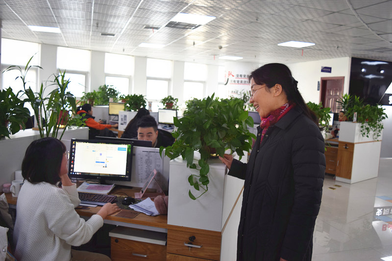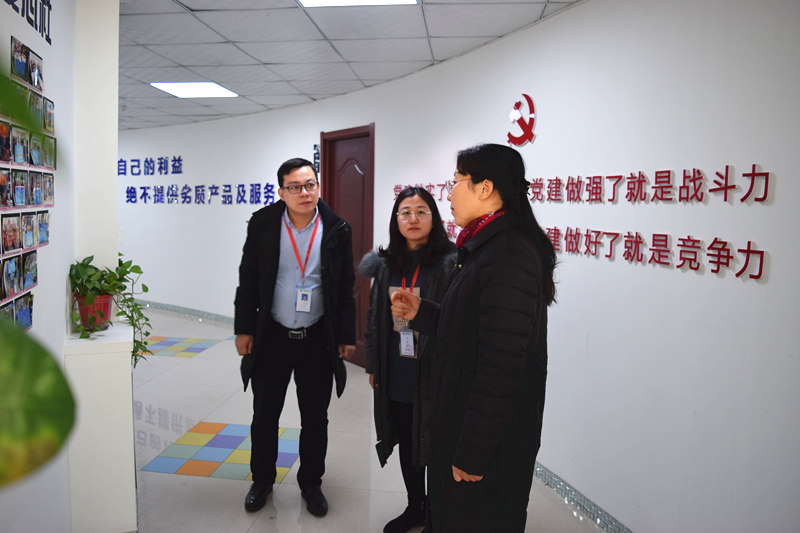 劉亞芳總監(jiān)為領(lǐng)導(dǎo)介紹公司各個(gè)部門中的職能與詳細(xì)工作,公司中各個(gè)工作崗位上都有黨員的身影,隨處可見黨員示范崗,