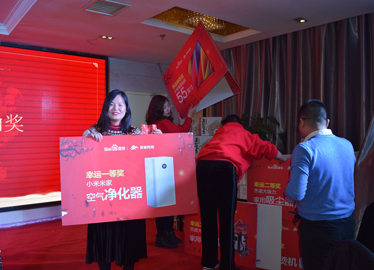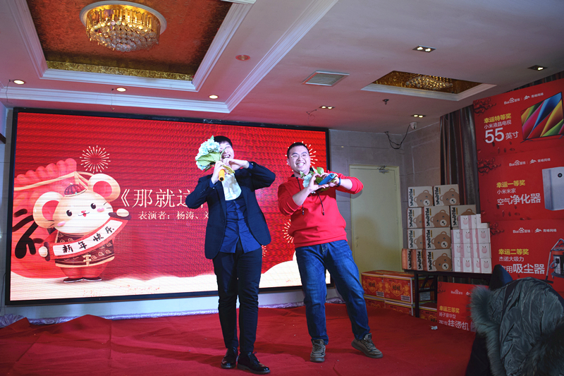 簽到篇 看到嗎?大獎已經(jīng)準(zhǔn)備好了?。?/p> 美酒美食上桌 簽到了小伙伴們??! 一聲簽到了,瞬間排起長龍! 美麗帥氣的主持人準(zhǔn)備開場! 2020,恭喜發(fā)財,萬事如意,笑口常開! 大獎非你莫“鼠”! 節(jié)目篇 一聲開門紅,開啟節(jié)目篇,將答謝會的熱情推向波高潮!祝福大家來年紅紅火火!! “歌神”一亮相,小迷妹們立刻集結(jié),演唱會模式瞬間開啟, oh my god!唱的也太好聽了吧! 營銷部小品《郵輪風(fēng)云》,完全顛覆了日常形象, 妥妥的小品“扛把子”誕生了! 吉他彈唱一首《晴天》,把我們瞬間帶進美好的校園愛情的回憶,青峰人真是太多才多藝! 百度推廣部帶我們一起左邊畫個龍,右邊畫一道彩虹,兩個食指就像兩只穿天猴,指向閃耀的燈球?。?! 游戲篇 愛的魔力轉(zhuǎn)圈圈,一條大紅布圈起明年的好運來! 氣球運杯,你來我往,一會兒運氣爆棚! 好運連連,一件大T恤,連接起你我他!happy!! 篇 千呼萬喚篇即將來襲,你可能不知道,大家因為緊張的手都在顫抖! 然而,你可能想象不到,今年的大獎在輪就被抽走了?。?!臺下的小伙伴們,瞬間心死~~~ 他們其中有人歇完產(chǎn)假回來就上了一天班,就拿了一等獎, 還有人前一天晚上說如果我得了大獎怎樣怎樣,然后夸下的??诰屯蝗粚崿F(xiàn)了............ 看到特等獎的劉冉了嗎?我們已經(jīng)決定組團去他家看電視了........ 哈哈哈哈! 頒獎片 付出總會有收回,小伙伴們來年繼續(xù)加油哇! 等一下,還有我們的神秘大禮 桶桶都旺! 祝愿大家統(tǒng)統(tǒng)都旺啊! 王總致祝酒詞希望大家凝心聚力,再創(chuàng)輝煌! 開啟今天的晚宴嘉年華! 讓我們共同舉杯!迎接2020! 后,祝福大家 鼠年送你大元寶,財源滾滾往家跑; 鼠年送你福滿多,和家幸福好運來; 鼠年送你紅綿襖,身上暖暖心里暖; 鼠年得到祝福多,一年順心萬事和! 新的一年,非你莫“鼠”